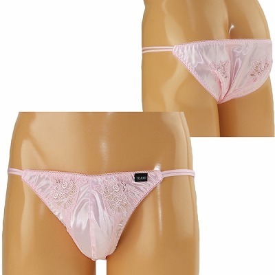 メンズ 光沢ストレッチ生地レース装飾フルバック ピンク ピンク