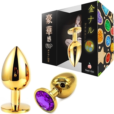 金色のプラグにキラキラとしたゴージャスな輝き!メタルの重量感・冷感がアナルを刺激し見た目も華やか。サイズもS・M・Lの3サイズあるため、お好みのサイズとカラーでお楽しみください。Sサイズ、パープル