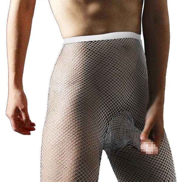 白のメッシュで伸縮性抜群!フロントが本格的なメンズ仕様になった筒型パンティストッキングなら、トイレも安心。