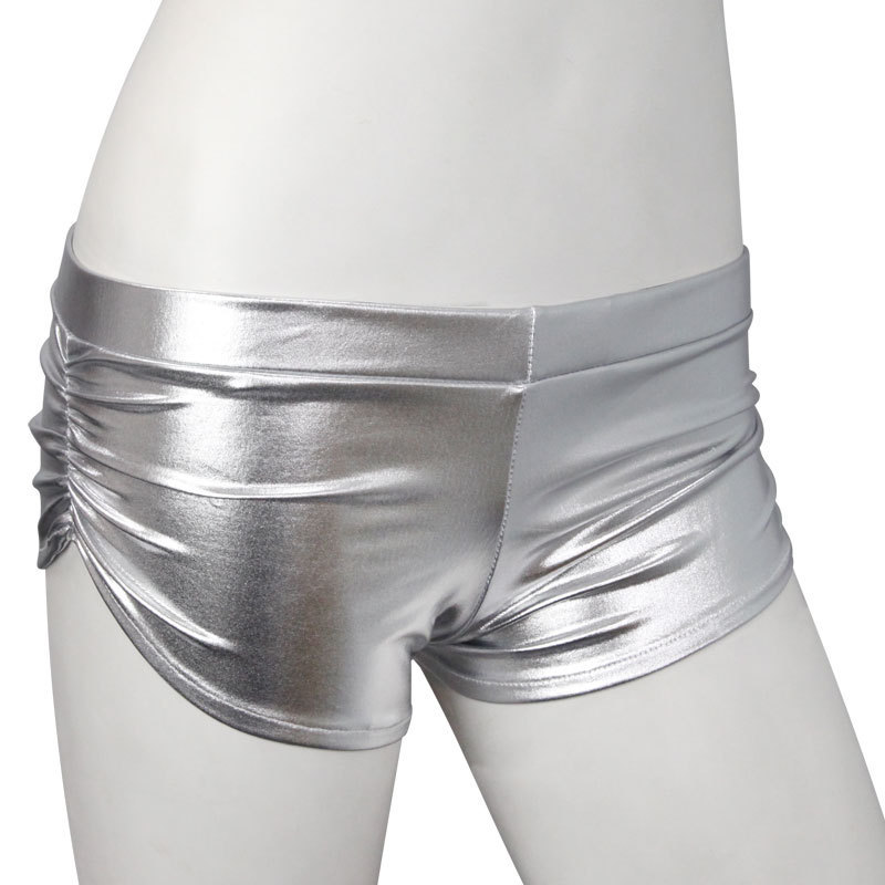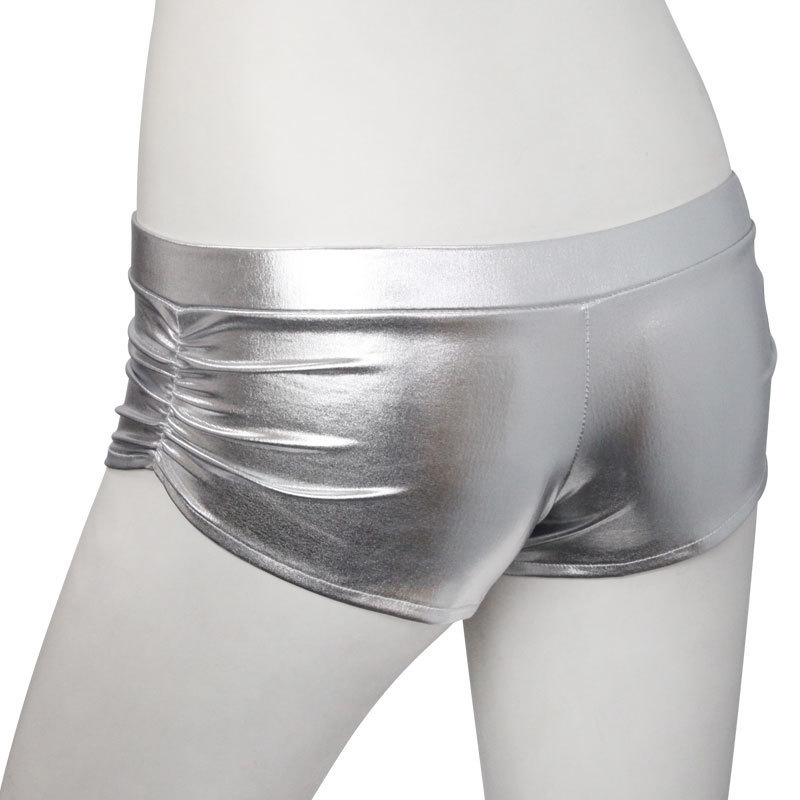 ピチピチ感がたまらない!セクシーなお尻を強調するメタリックホットパンツ。
