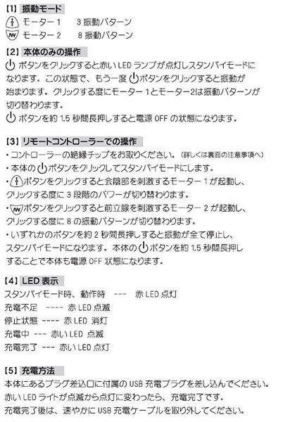 ■仕様:パッケージ:16.0×16.0×6.4cm 本体:全長13.0cm 挿入部分2.8〜3.1cm×横幅4.0cm 会陰部分横幅5.0cm リモコン:5.7×3.5cm セット内容:本体、リモコン、充電USBケーブル、説明書、ポーチ 電池:本体 USB充電式、リモコン ボタン電池(CR2032)