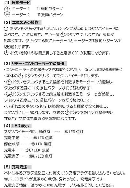 ■仕様:パッケージ:17.5×17.5×6.5cm 本体:全長14.5cm 挿入部分(先端)2.3cm・(横幅)4.0〜4.3cm リモコン:5.7×3.5cm セット内容:本体、リモコン、充電USBケーブル、説明書、ポーチ 電池:本体 USB充電式、リモコン ボタン電池(CR2032)