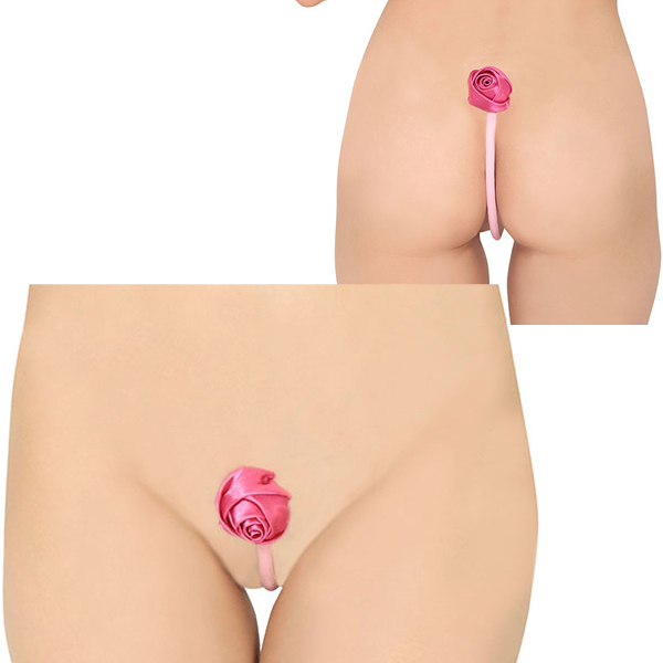 食い込むようにフィットする極限まで布を削った究極のショーツ!エレガントなローズの飾りがフロント部分とお尻を可愛く飾るセクシーなI型ストリングです。