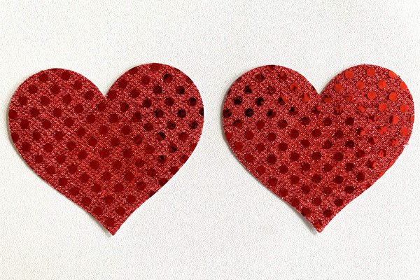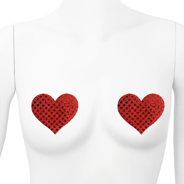 キラキラ煌めくラメで貴方の想いを伝えるハート型のニップレス(赤)。