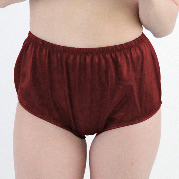 男女兼用!深めの股上とゆるりとしたシルエットが、どこか懐かしさを覚える光沢のあるストレッチ性の日本製ブルマ(赤)。