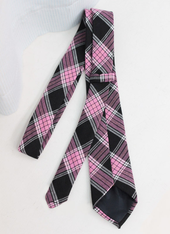 キラキララメ入り!斜め格子がお洒落な、ピンクチェックのスクールネクタイです。