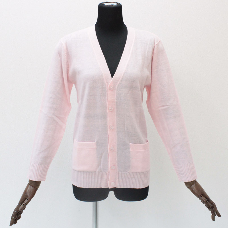 いつもの制服コスチュームがもっと可愛くなっちゃう!淡いピンクが可愛い王道のニットカーディガン。