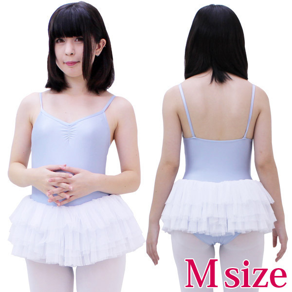 チュールスカート付きキャミソールレオタード 水色×白 M