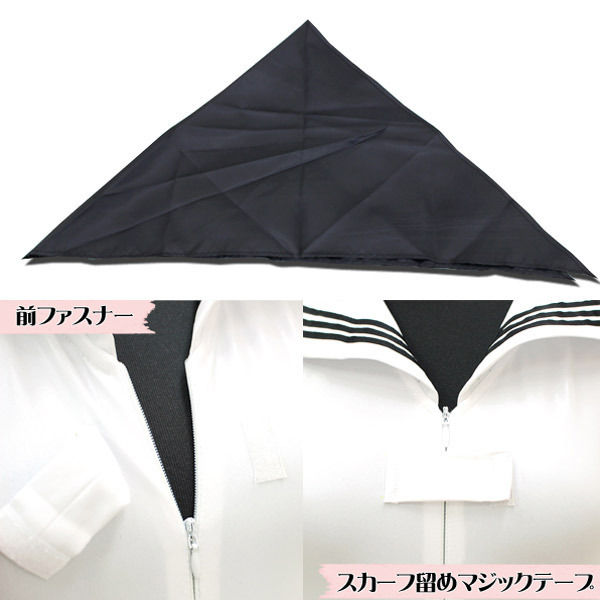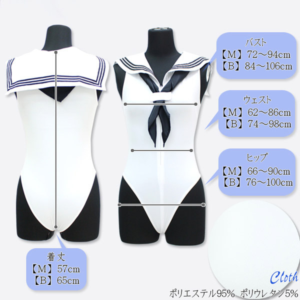 ■仕様:BIGサイズ:B84〜106cm・W74〜98cm・H76〜100cm 着丈65cm セット内容:レオタード(前ファスナー)、スカーフ(マジックテープ) 素材:ポリエステル95%、ポリウレタン5% セーラーノースリーブレオタード 色:白