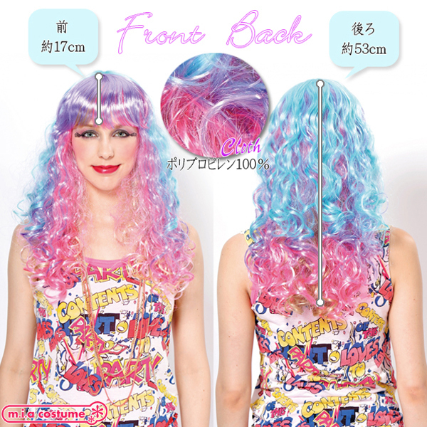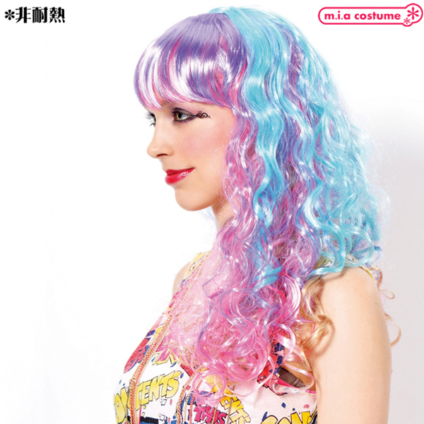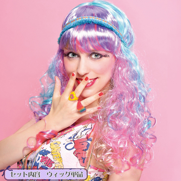コスプレイベントやハロウィン、誕生日パーティなどで着ければ目立つこと間違いなし!人気シリーズ「セレブパーティーウィッグ」の新作、ポップなカラーが可愛いロングウェーブのウィッグ(レインボー)が登場♪ピンクや水色、パープルなど、複数色を混ぜ合わせた夢かわカラーウィッグ♪原宿系ファッションとも相性抜群◎