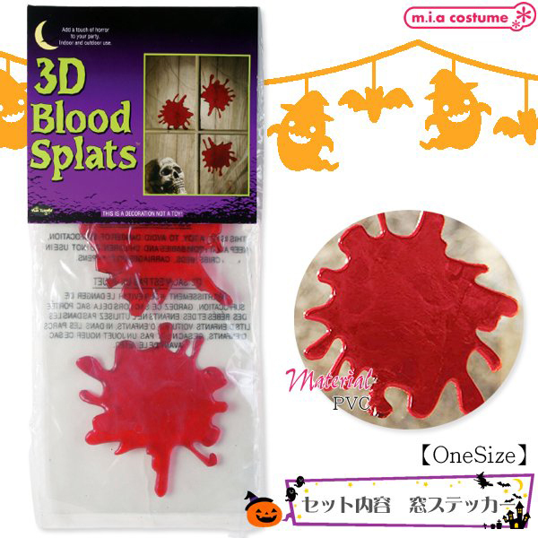 ハロウィンパーティやコスプレイベント、文化祭などで大活躍!血塗られた窓を手軽に再現できる「3D Blood splats(3枚入り)」。