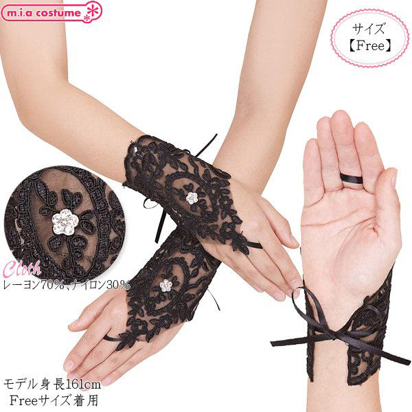 HOME > コスプレ衣装 > 小道具(ニーソックス・猫耳) > レースグローブ Lily ブラック