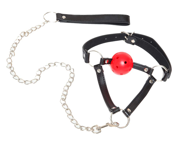 調教 リード付き口枷 (ボールギャグ)