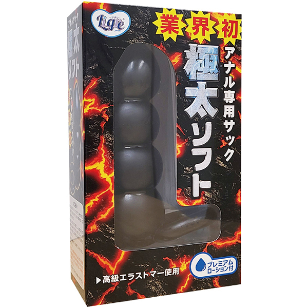 業界初!アナル専用のサックが登場!それがアナルサック「極太ソフト」です!アナル専用サックとして、アナルプラグのような形状!見た目にも強そうな作りですが、本体はやんわりソフト。
