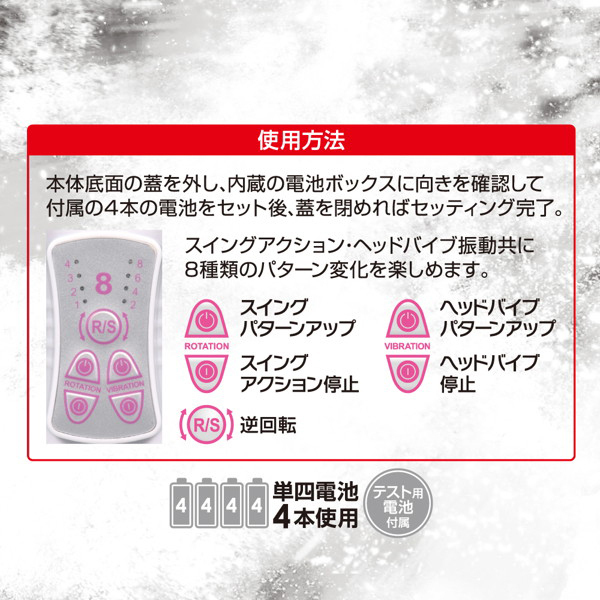 ■仕様:パッケージ:23.2×7.5×4.0cm 本体:21.7×3.4cm 重量:134g 電池:単四電池×4本使用