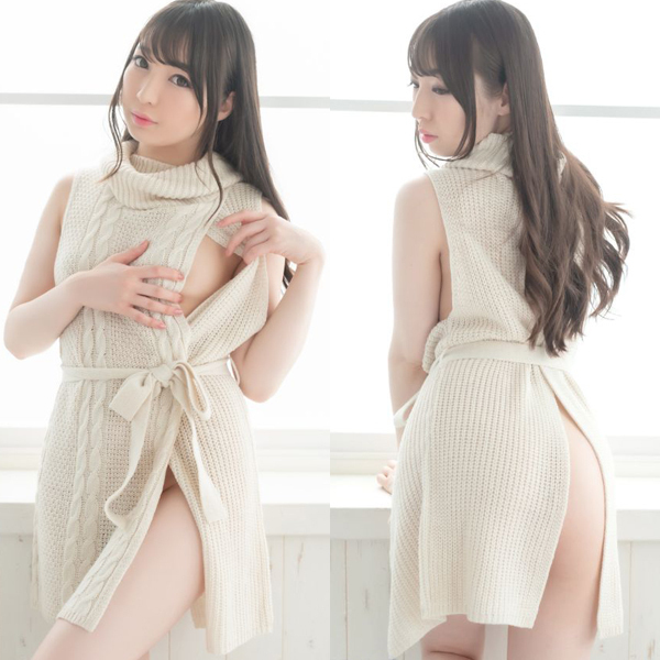 ほっこり温かみのある雰囲気ながら、縦スリットを開けばガラリと印象が変化!チラリと覗く素肌にはパートナーもときめかずにはいられません♪ウエストの紐を結ぶ箇所によって様々なアレンジをお楽しみいただけます。