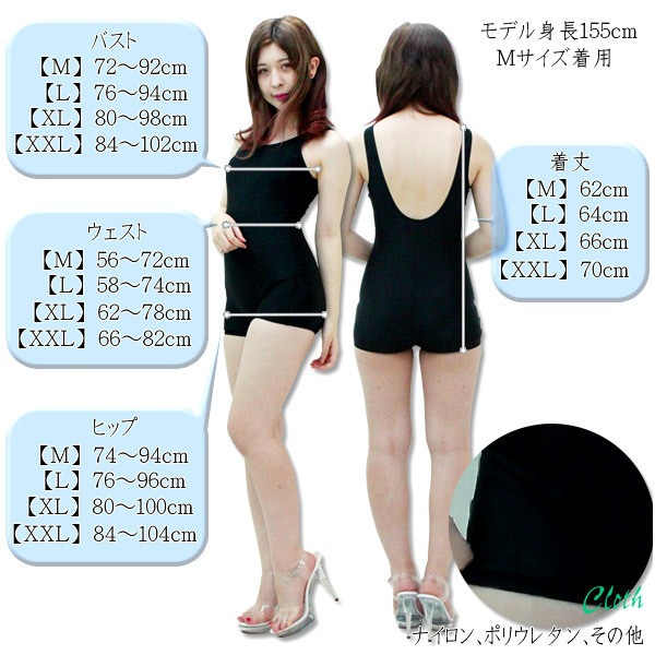 ■仕様:XXLサイズ:B84〜102cm・W66〜82cm・H84〜104cm 着丈70cm セット内容:水着単品(前身頃全面に裏地付き、胸部にパット付き) 素材:ナイロン、ポリウレタン、その他