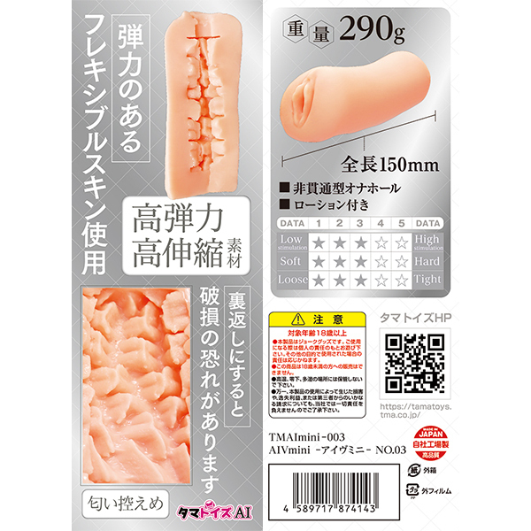贅沢な挿入刺激であなたを包み込みます♪この非貫通オナホールは、ブロックのような肉突起が360度からアタックして、予測不能なランダム刺激を提供します!高弾力で伸縮性のあるフレキシブルスキン素材を採用し、タマトイズの国内工場生産による高品質が保証されています♪シンプルな筒型アウターフォルムで、ハンドリングもしやすい設計!オリジナルAIVシリーズをコンパクトにサイズダウンし、手軽に楽しめるようになっています♪AIが導き出した最適な内部構造により、無数のボコボコとした突起がサオ全体を刺激し、射精感を促進!内部の突起は先端が山型になっており、ヒダのようなズリ感も楽しめます♪さらに、幾何学模様のような突起配置が、予測不能なランダム刺激を生み出し、独特の挿れ心地を提供します!奥まで続く十字ヒダが織りなす刺激が、全体を心地よく包み込む♪サラサラのローションと合わせて使用することで、より滑らかな使用感を楽しむことができます!万華鏡のような内部構造が、視覚的にも楽しめるギミックを持ち、飽きることなく使用できるでしょう♪●メーカー型番:TMAImini-003
