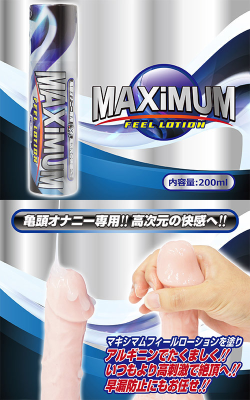 勃起力が上がる!?アルギニン、メントール成分を配合した、亀頭オナニー専用ローション「マキシマムフィールローション」(200ml)。