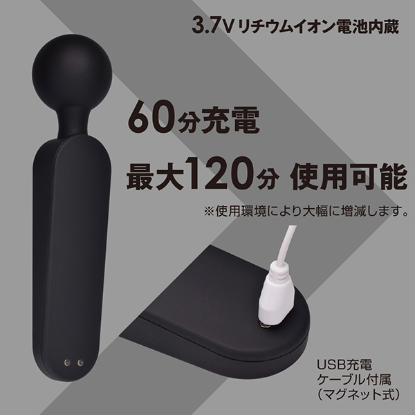 ■仕様:パッケージ:26.4×7.3×5.5cm 本体:全長21.3cm・ヘッド直径4.5cm 重量:150g USB充電式