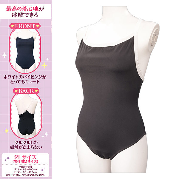 かわいらしさと清潔感を兼ね備えた紺色スクール水着です!フィット感のある生地がしっかりと体に寄り添い自然なシルエットを演出します♪ホワイトのパイピングがアクセントになりスポーティーかつキュートな印象をプラス!伸縮性のある素材で動きやすく快適な着心地を実現♪男性用Mサイズ相当の2Lサイズ設計でおとこの娘にもぴったりフィット!バスト88〜100cm・ヒップ90〜102cmに対応しています♪ワレメ風の立体カップ構造により♪衣装としての完成度を高めています!コスチュームやパフォーマンス用としてもおすすめです♪●TMT-1837