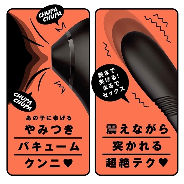 クリトリスを吸引!チュパチュパ吸われて反対側のバイブで振動刺激も楽しめる「完全防水 吸引挿入 2WAY KYUIN PISTON VIBE 吸引ピストンバイブ」です♪吸われて突かれてイキ尽くし!吸われると病みつきになるバキュームクンニは9種の多彩な吸引パターンを搭載。